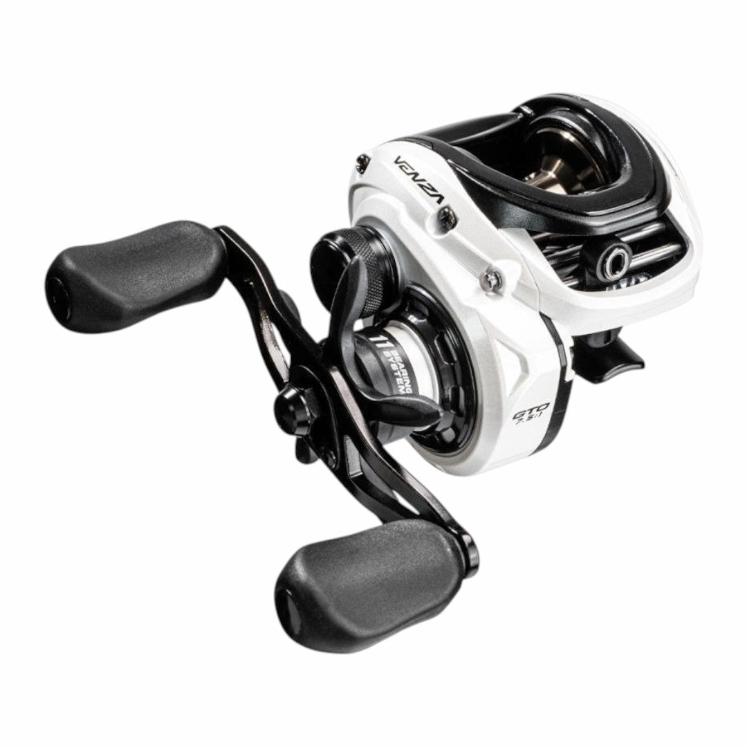 El Marine Venza 11000 ofrece una relación de recuperación de 7.5:1, un peso aproximado de 198 g, y una capacidad de línea de hasta 0,33 mm / 110 m. Su cuerpo y manivela de aluminio aligerado permiten jornadas de pesca más cómodas, mientras que su mecanismo interno optimizado brinda suavidad en cada giro. Perfecto para técnicas finas de pesca deportiva.