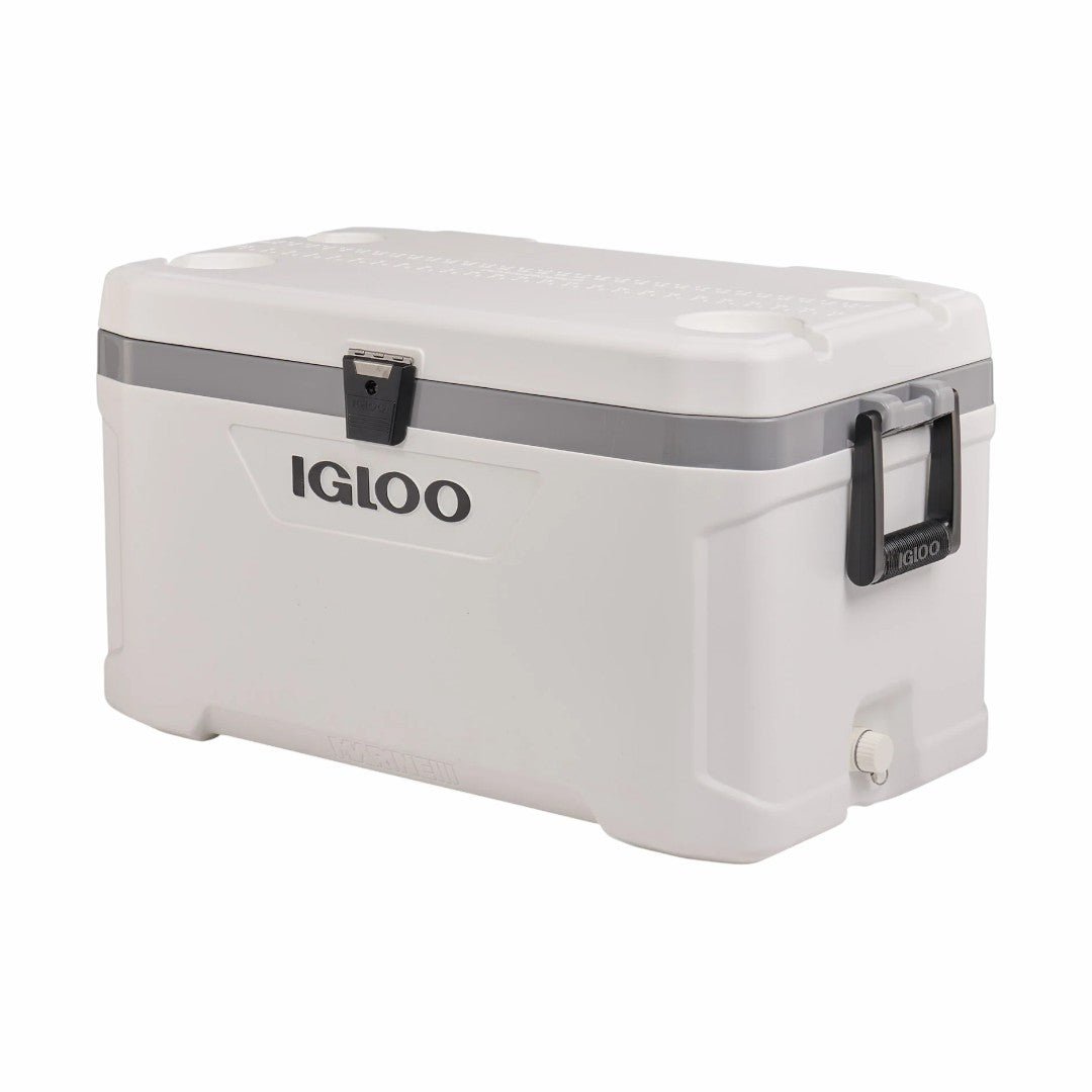 La Igloo Marine Ultra 54 Qt ofrece una excelente capacidad para salidas al aire libre con hasta 76 latas de 12 oz, aislamiento Thermecool® que mantiene el contenido frío por varios días, y diseño resistente a ambientes marinos con asas antideslizantes, cierre de acero inoxidable y protección UV.